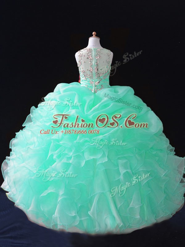 Straps Sleeveless Organza Little Girls Pageant Dress Wholesale Beading and Ruffles and Pick Ups Zipper