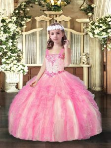Home >  Special Occasion Dresses >  Lovely Little Girl Pageant Dresses > Straps Sleeveless Organza Little Girls Pageant Dress Wholesale Beading and Ruffles Lace Up