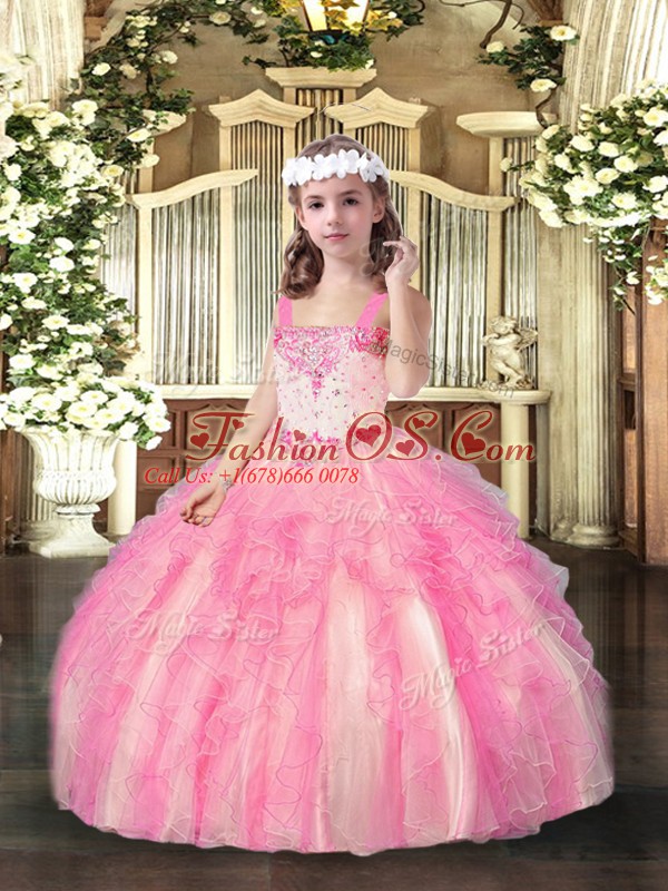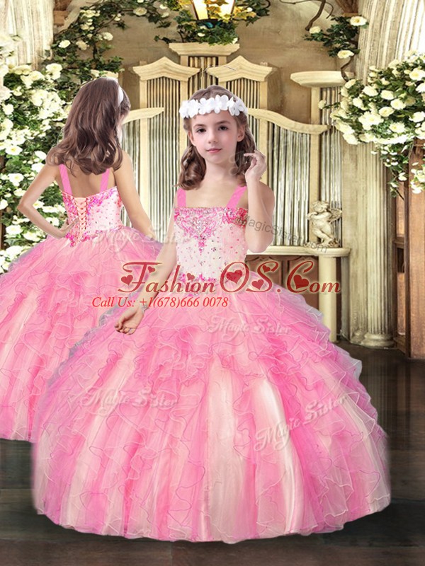 Straps Sleeveless Organza Little Girls Pageant Dress Wholesale Beading and Ruffles Lace Up