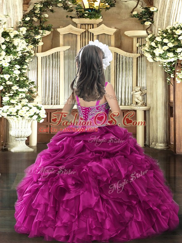 Home >  Special Occasion Dresses >  Beautiful Kids Pageant Dresses > Straps Sleeveless Organza Pageant Dress for Womens Beading and Ruffles Lace Up