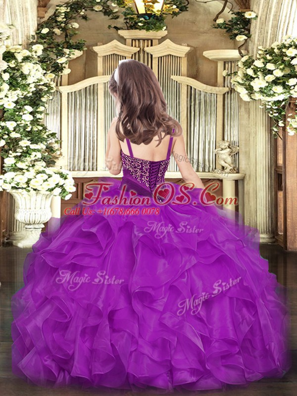 Straps Sleeveless Organza Pageant Dress Toddler Beading and Ruffles Lace Up