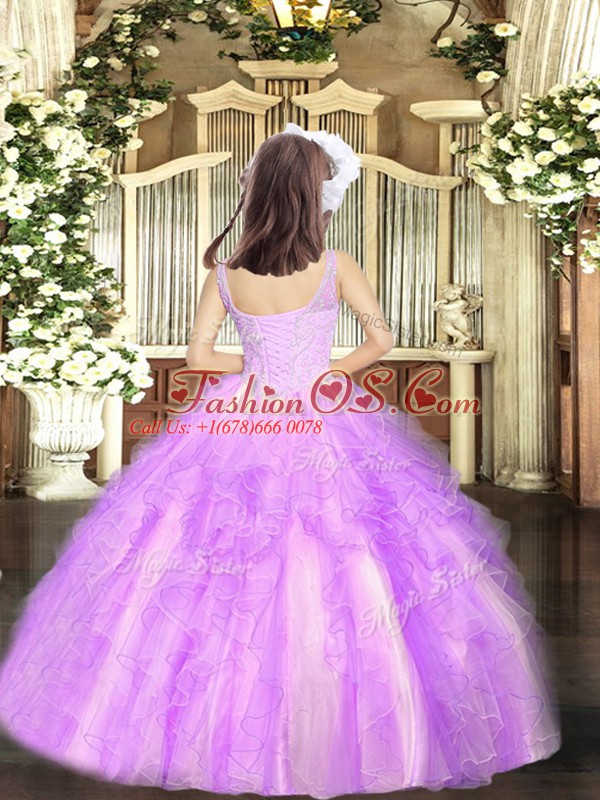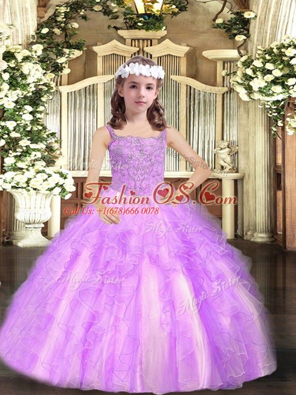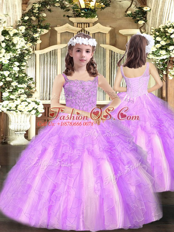Straps Sleeveless Organza Pageant Gowns For Girls Beading and Ruffles Lace Up