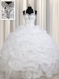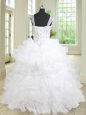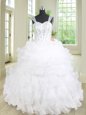 Straps Sleeveless Quinceanera Dresses Floor Length Beading and Ruffles and Pick Ups White Organza