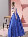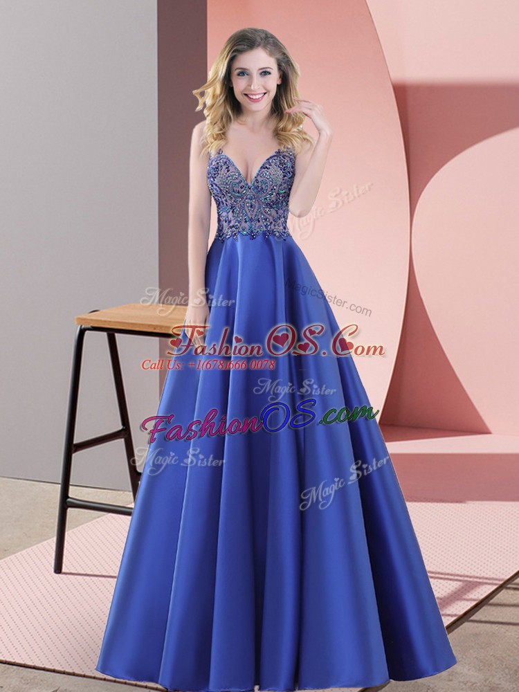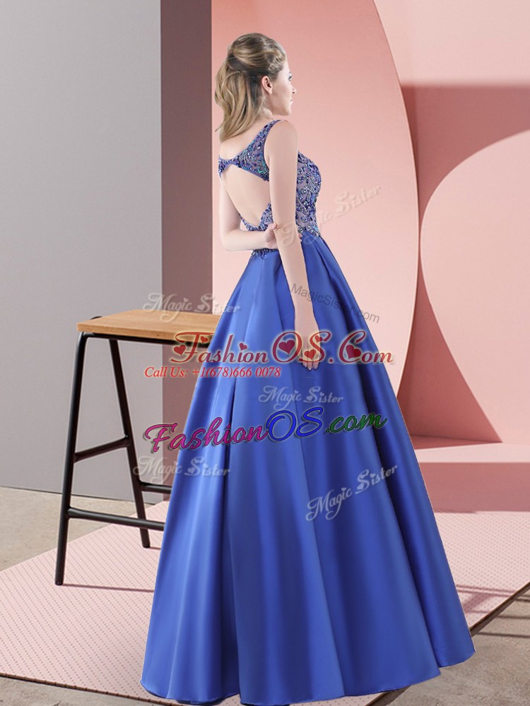 Straps Sleeveless Satin Prom Dresses Beading Sweep Train Backless