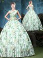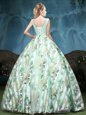 Straps Sleeveless Sweet 16 Dresses Floor Length Appliques and Pattern Multi-color Tulle