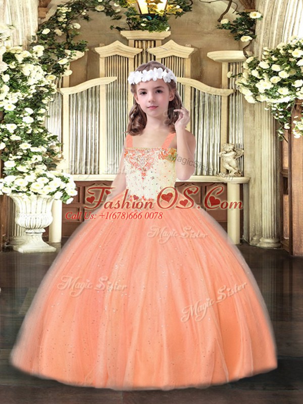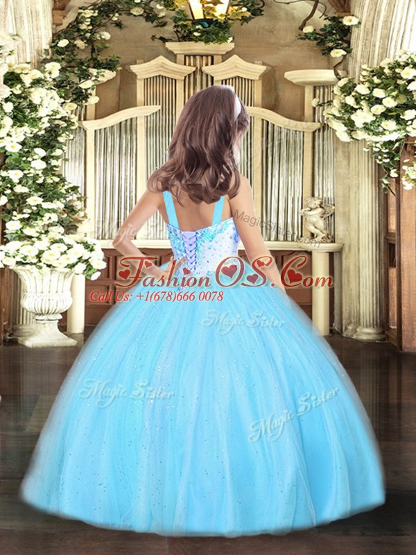 Straps Sleeveless Tulle Child Pageant Dress Beading Lace Up