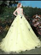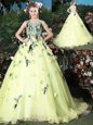 Straps Sleeveless Tulle Floor Length Lace Up Sweet 16 Dresses in Multi-color for with Appliques and Pattern
