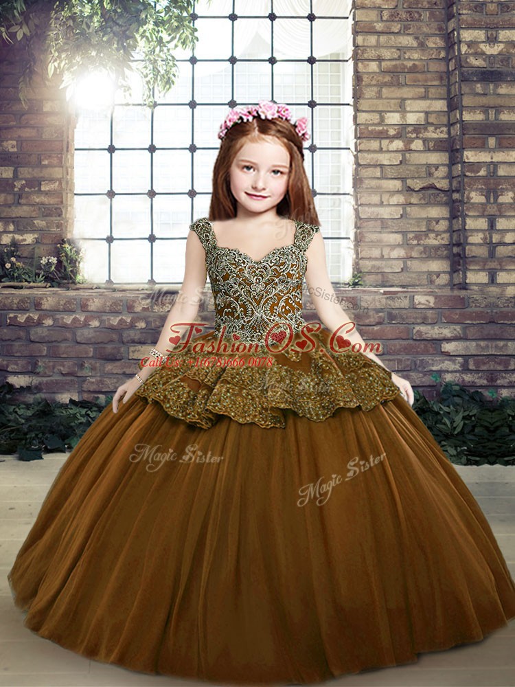 Straps Sleeveless Tulle Little Girl Pageant Dress Beading and Appliques Lace Up