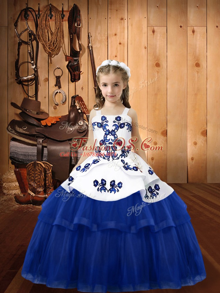 Straps Sleeveless Tulle Pageant Gowns For Girls Embroidery Lace Up