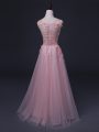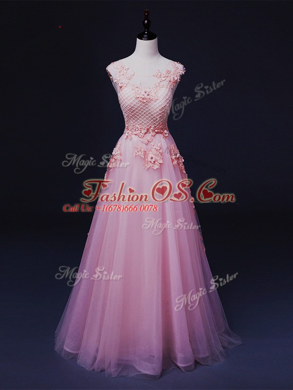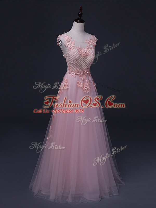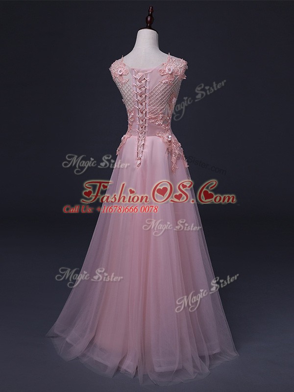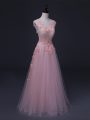 Straps Sleeveless Tulle Prom Evening Gown Appliques Lace Up