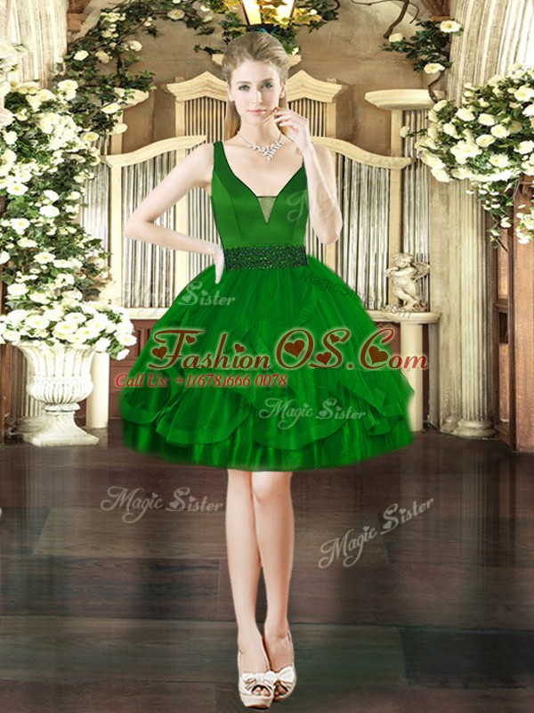 Straps Sleeveless Tulle Sweet 16 Dress Beading and Ruffles Lace Up