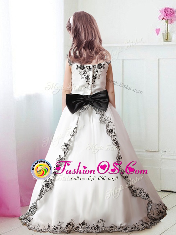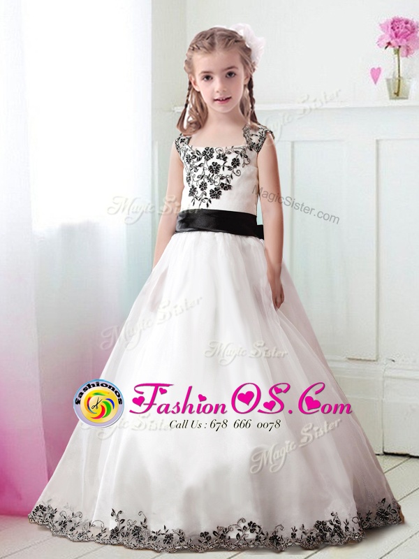 Straps White Sleeveless Appliques and Belt Floor Length Flower Girl Dresses for Less