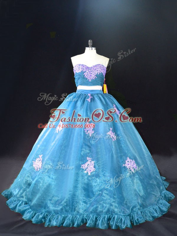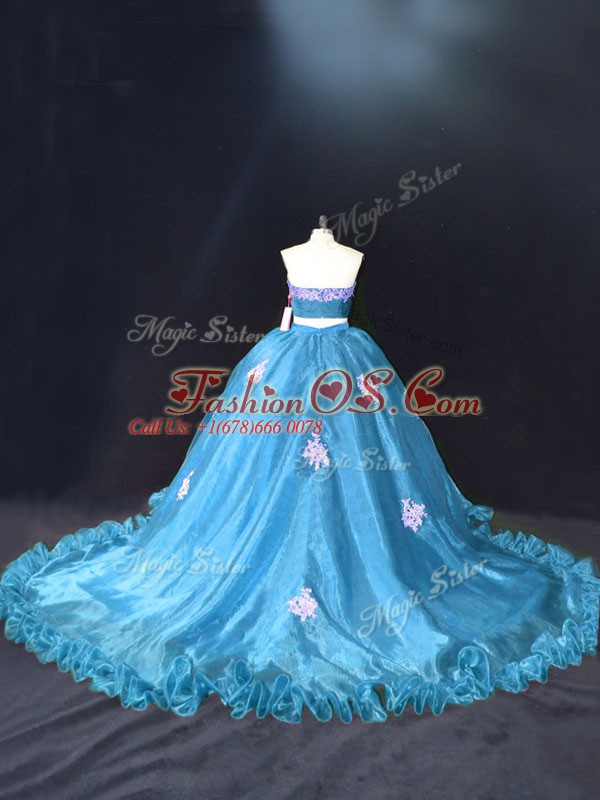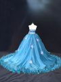 Stunning Ball Gowns Sleeveless Aqua Blue Quinceanera Dress Brush Train Zipper