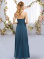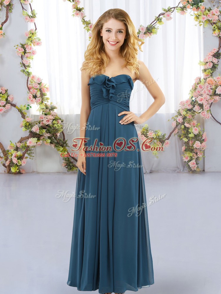 Stunning Empire Dama Dress for Quinceanera Navy Blue Sweetheart Chiffon Sleeveless Floor Length Lace Up