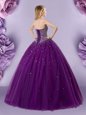 Home >  Quinceanera Dresses >  Cute Quinceanera Dresses > Stunning Floor Length Dark Purple 15th Birthday Dress Tulle Sleeveless Beading