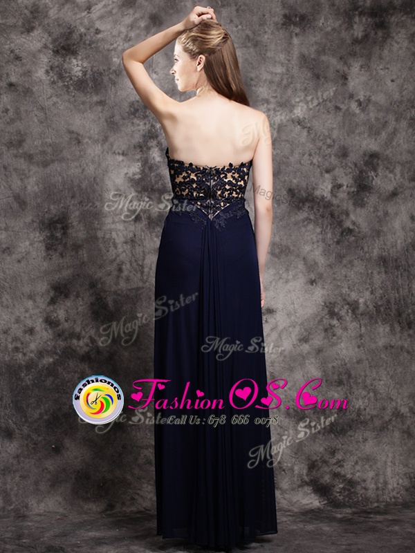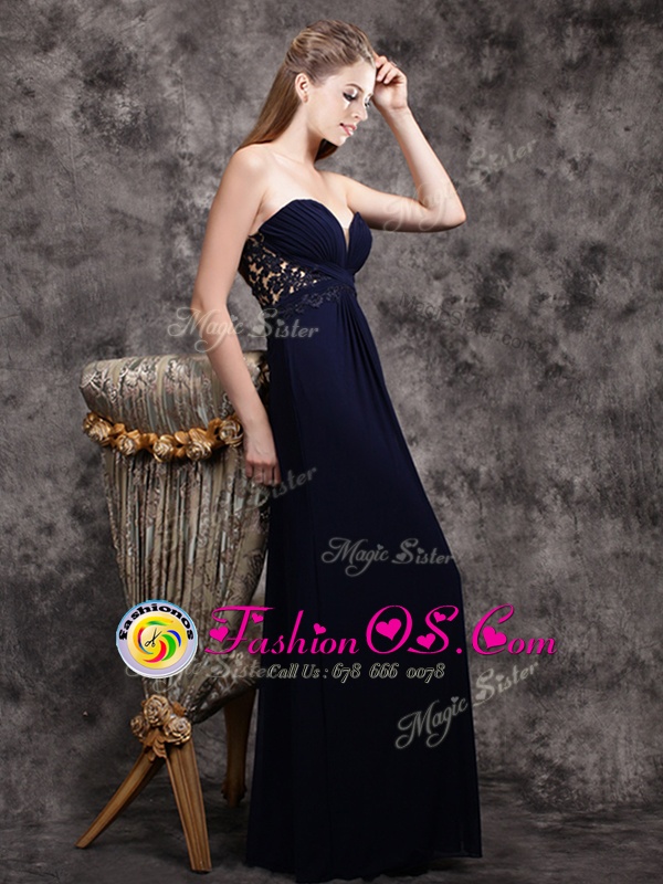 Stunning Floor Length Navy Blue Sweetheart Sleeveless Zipper