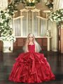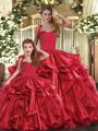 Stunning Floor Length Red Quince Ball Gowns Organza Sleeveless Ruffles
