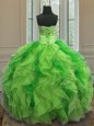 Home >  Quinceanera Dresses >  Fast Delivery Quinceanera Dresses > Stunning Four Piece Sweetheart Sleeveless Ball Gown Prom Dress Floor Length Beading and Ruffles Organza