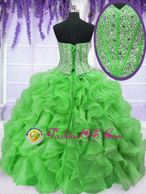 Stunning Four Piece Sweetheart Sleeveless Ball Gown Prom Dress Floor Length Beading and Ruffles Organza