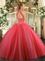 Stunning Fuchsia High-neck Lace Up Beading Sweet 16 Dress Sleeveless
