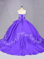 Stunning Lace Up Sweet 16 Quinceanera Dress Purple for Sweet 16 and Quinceanera with Embroidery Court Train