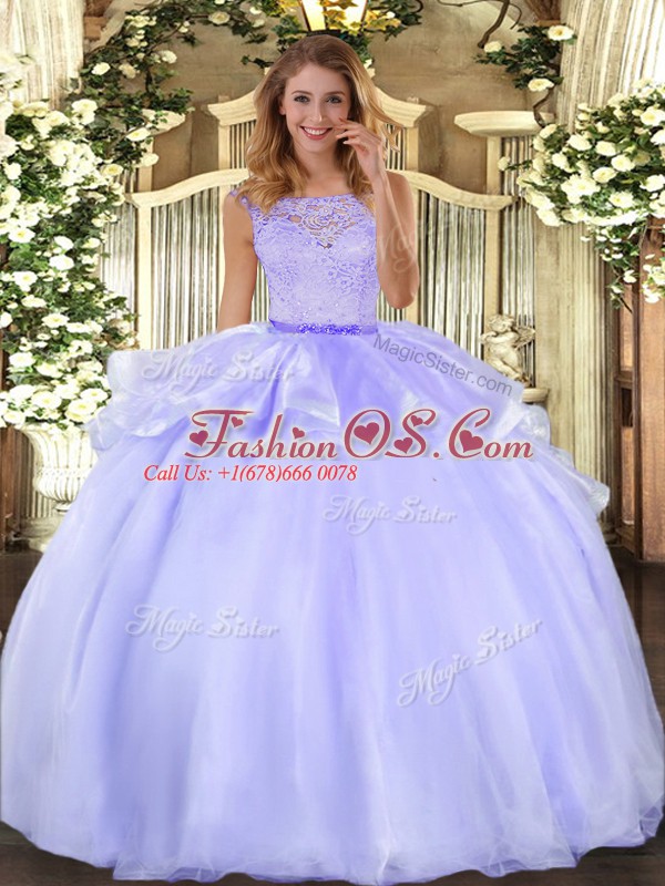 Home >  Quinceanera Dresses >  Fast Delivery Quinceanera Dresses > Stunning Lavender Scoop Clasp Handle Lace 15th Birthday Dress Sleeveless