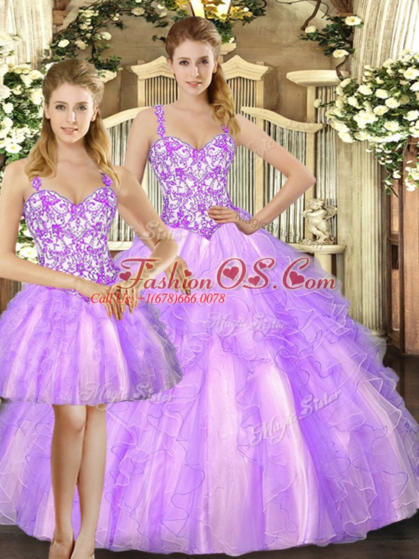 Home >  Quinceanera Dresses >  Detachable Quinceanera Skirts > Stunning Lilac Organza Lace Up Straps Sleeveless Floor Length Quinceanera Gowns Beading and Ruffles