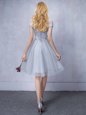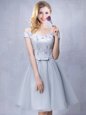Stunning Off the Shoulder Grey Sleeveless Appliques and Belt Knee Length Wedding Guest Dresses