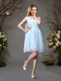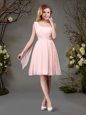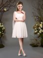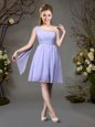 Stunning One Shoulder Red and Champagne Sleeveless Mini Length Beading and Ruching Zipper Bridesmaids Dress