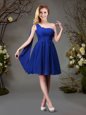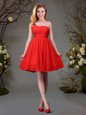 Home >  Bridesmaid Dresses >  Simple Bridesmaid Dresses > Stunning One Shoulder Red and Champagne Sleeveless Mini Length Beading and Ruching Zipper Bridesmaids Dress