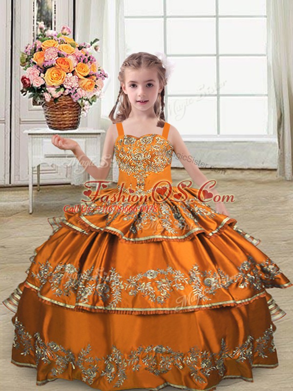 Home >  Special Occasion Dresses >  Beautiful Kids Pageant Dresses > Stunning Orange Lace Up Glitz Pageant Dress Embroidery and Ruffled Layers Sleeveless Floor Length