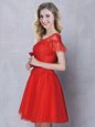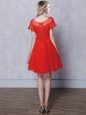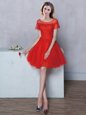 Stunning Red A-line Scoop Short Sleeves Tulle Mini Length Lace Up Lace Quinceanera Dama Dress