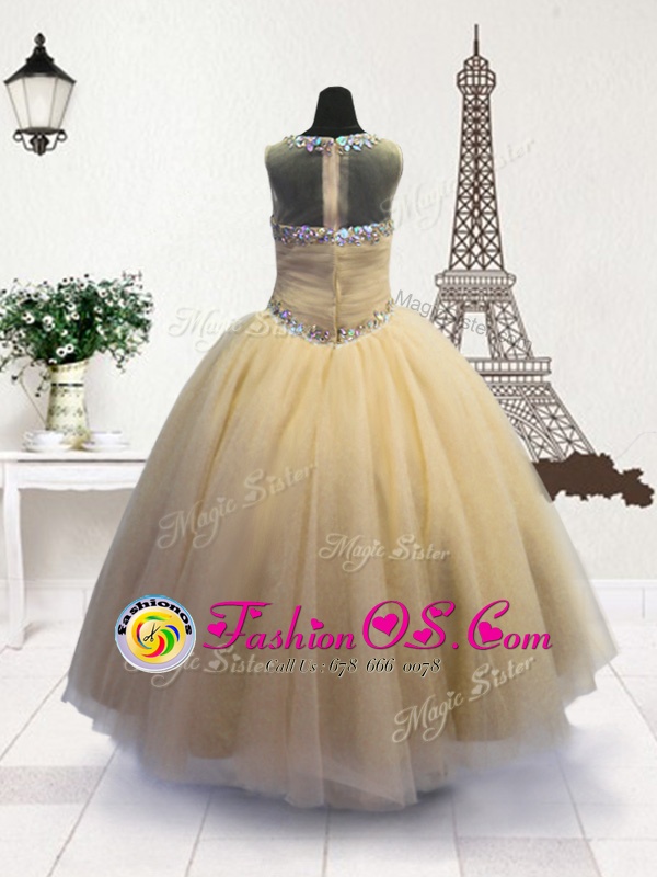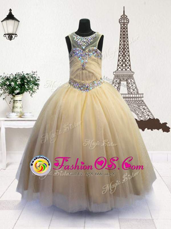 Home >  Special Occasion Dresses >  Mini Quinceanera Dresses > Stunning Scoop Light Yellow Zipper Little Girl Pageant Dress Beading Sleeveless Floor Length