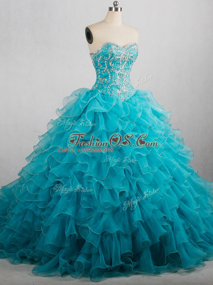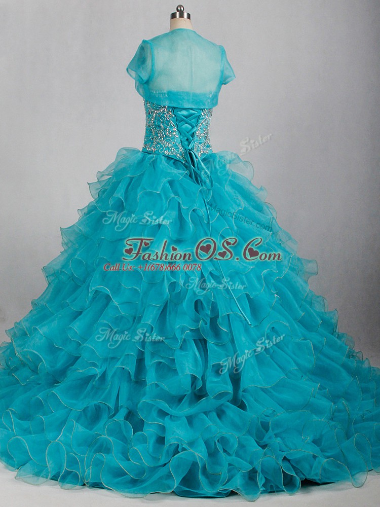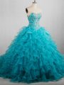Stunning Sleeveless Brush Train Beading and Ruffles Lace Up 15th Birthday Dress