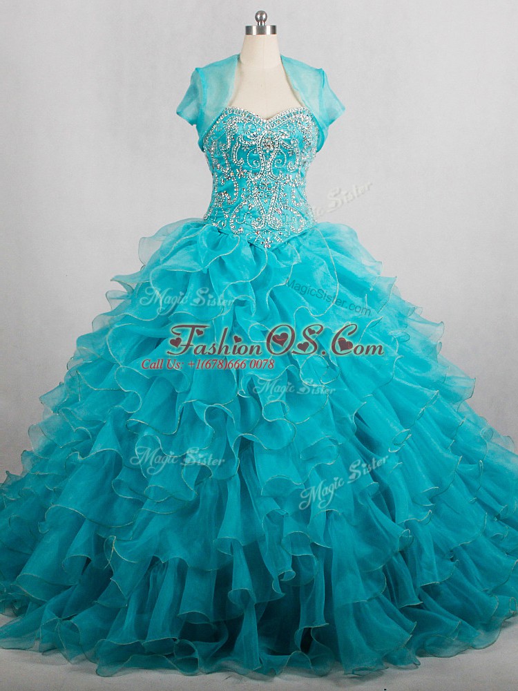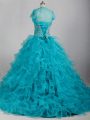 Home >  Quinceanera Dresses >  Fast Delivery Quinceanera Dresses > Stunning Sleeveless Brush Train Beading and Ruffles Lace Up 15th Birthday Dress