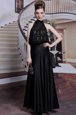 Stunning Sleeveless Floor Length Beading Zipper Prom Evening Gown with Black