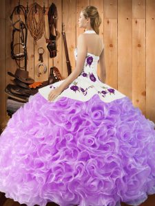 Stunning Sleeveless Floor Length Embroidery Lace Up Sweet 16 Dress with Apple Green