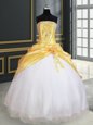 Stunning Sweetheart Sleeveless Ball Gown Prom Dress Floor Length Beading and Ruffles Apple Green Organza