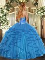 Stunning Sweetheart Sleeveless Lace Up Quinceanera Gowns Baby Blue Tulle