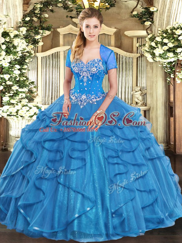 Home >  Quinceanera Dresses >  Fast Delivery Quinceanera Dresses > Stunning Sweetheart Sleeveless Lace Up Quinceanera Gowns Baby Blue Tulle