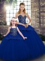 Stunning Tulle Sweetheart Sleeveless Lace Up Beading and Appliques Quinceanera Gowns in Royal Blue