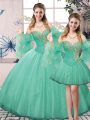 Stunning Turquoise Lace Up Sweetheart Beading 15th Birthday Dress Tulle Sleeveless