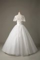 Home >  Wedding Dresses >  Latest Wedding Dresses > Stunning White Wedding Dress Beach with Beading and Appliques V-neck Short Sleeves Lace Up