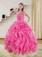 Sturning Hot Pink Quince Dresses with Beading and Ruffles for 2015
