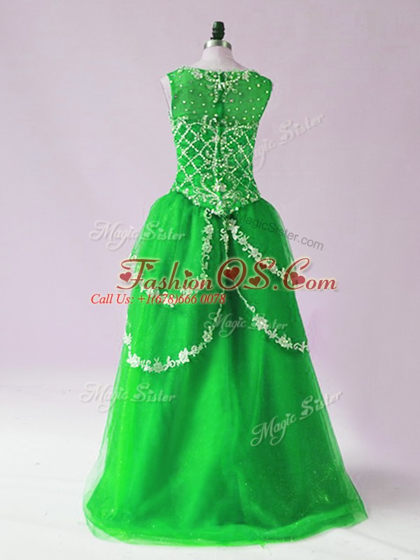Stylish A-line Oscars Dresses Green Scoop Tulle Sleeveless High Low Zipper