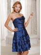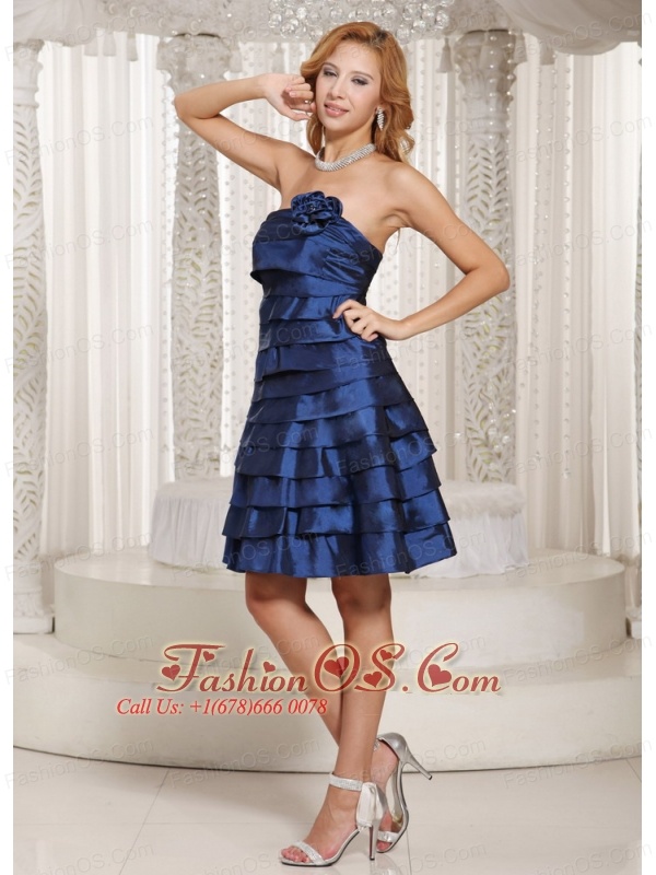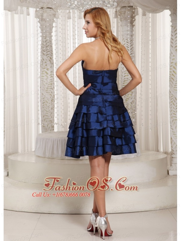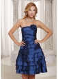Stylish A-line Ruched Layered Bridesmaid Dress Navy Blue Taffeta