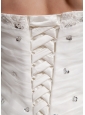 Big, beautiful dresses are the things fairy tales are made of. The modified sweetheart, dazzling beading consiste of the ruched bodice. The dreamy orangza fabric skirt starts from the drapping waist to the floor attached a wonderful train, which rise up the shining point when you dress in this dress. The trim of the corset style closure in the back can be satisfied with your needs.