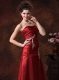 Strapless dresses are one of the sexier styles on the market today. This one features a strapless bodice with ruches and crystals details. The skirt flares out at the hip area on one side, creating a pretty silhouette. It is floor length which sways beautifully across the floor when you move. A lace up corset style closure in the back secures the dress in place.