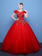 Stylish Champagne Lace Up Scoop Appliques Sweet 16 Quinceanera Dress Organza Sleeveless Brush Train