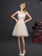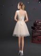 Home >  Bridesmaid Dresses >  Discount Bridesmaid Dresses > Stylish Champagne Lace Up Scoop Lace and Appliques and Belt Bridesmaid Gown Tulle Sleeveless